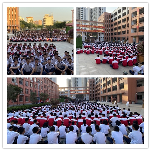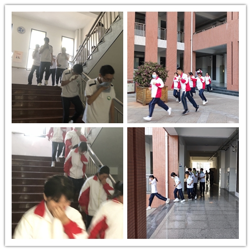 下午四时警报声准时响起,鸿雁楼二楼“起火”。2020级新生在教官及老师的指挥下,用“湿毛巾”捂着口鼻,压低身体,快速有序地从各自教室跑出并沿着墙根,通过疏散通道和安全出口迅速撤离到空旷地带。整个疏散过程有条不紊,用时1分钟38秒,所有学生成功撤离到安全地区。