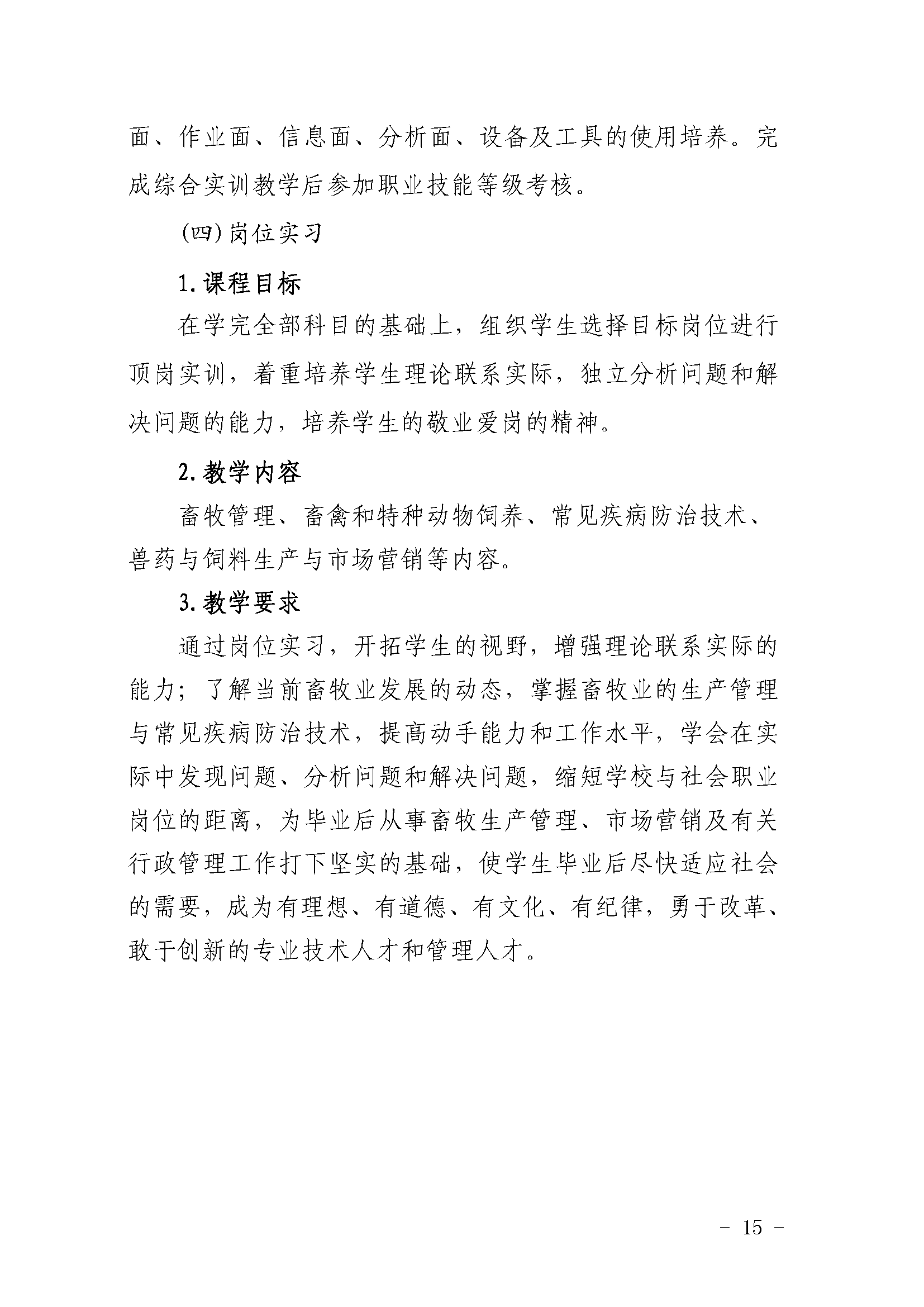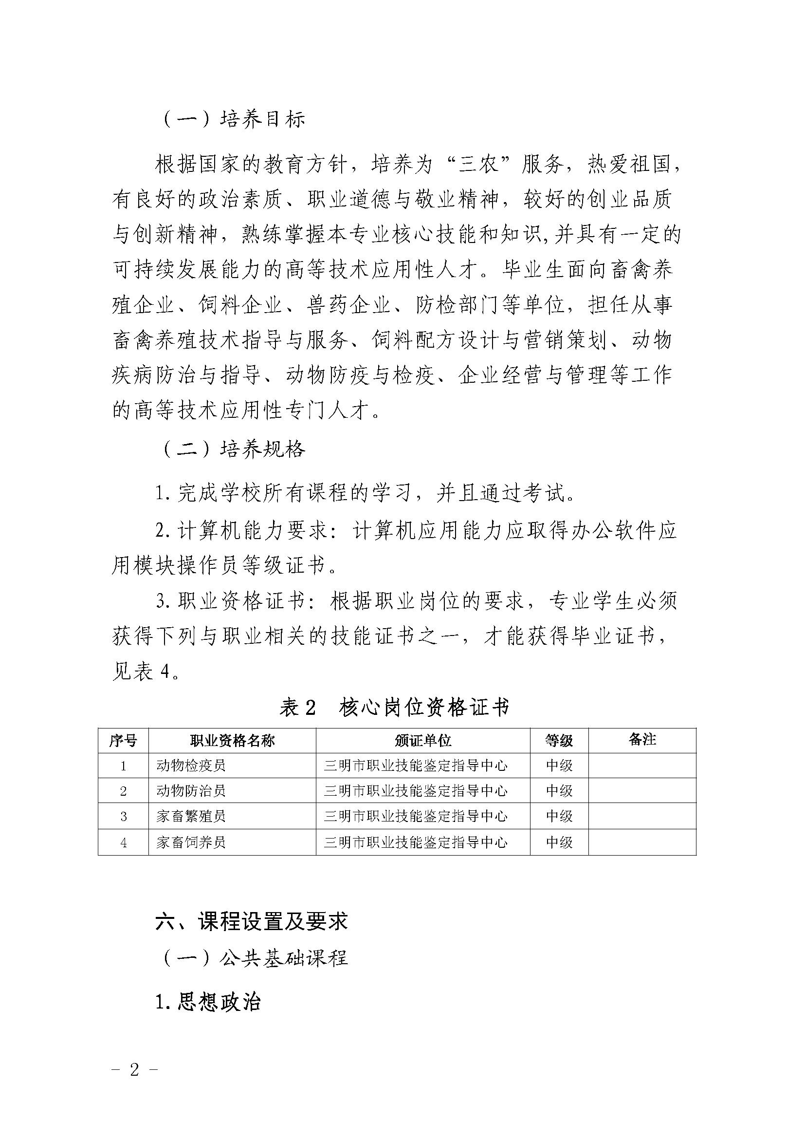 三明市农业学校畜禽生产技术专业人才培养方案(2023)