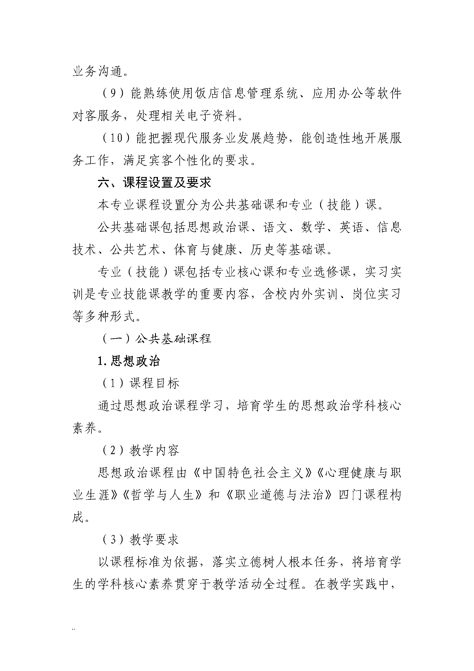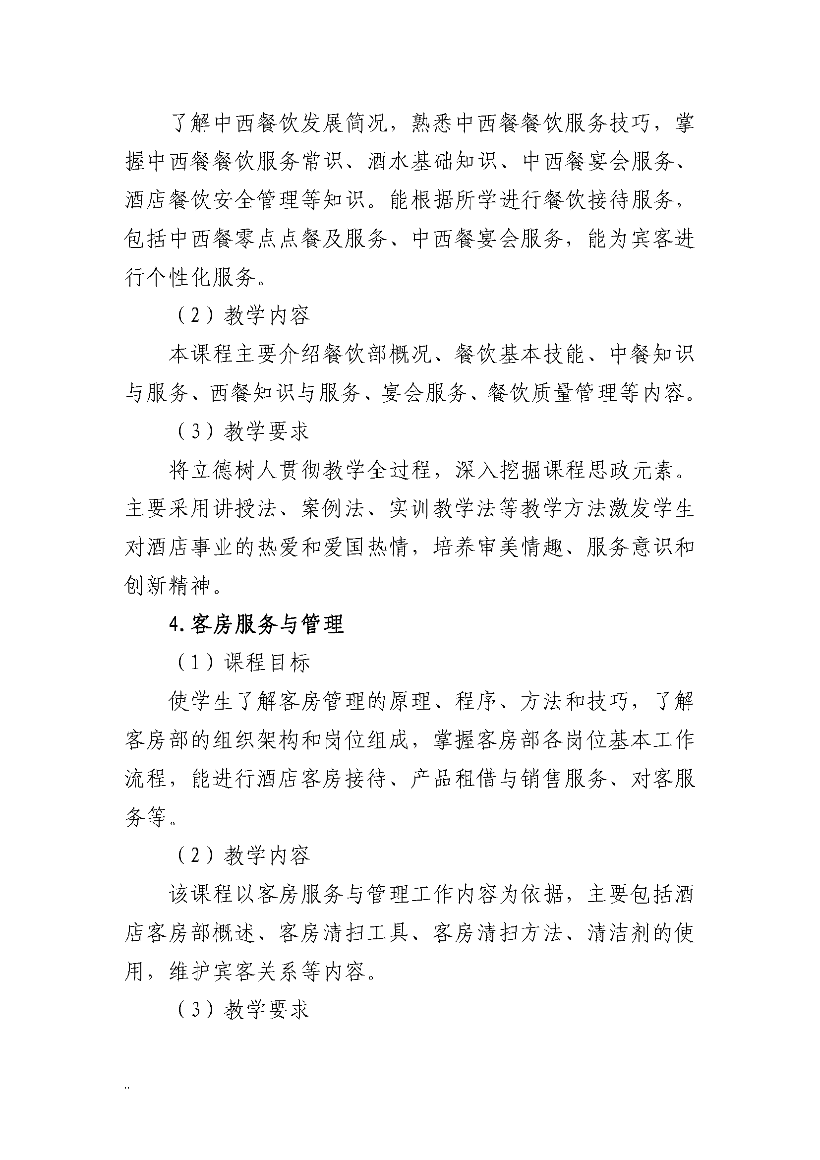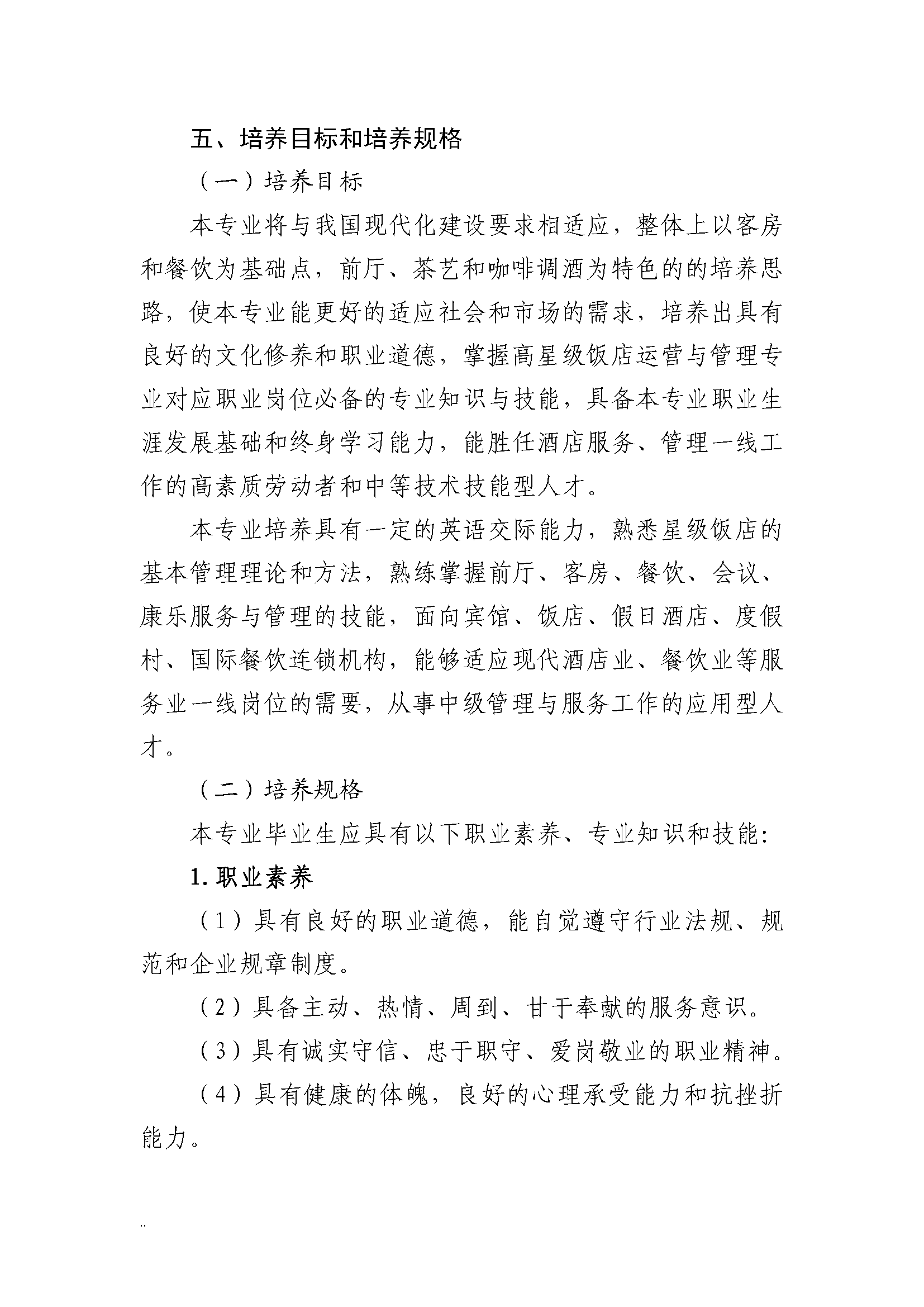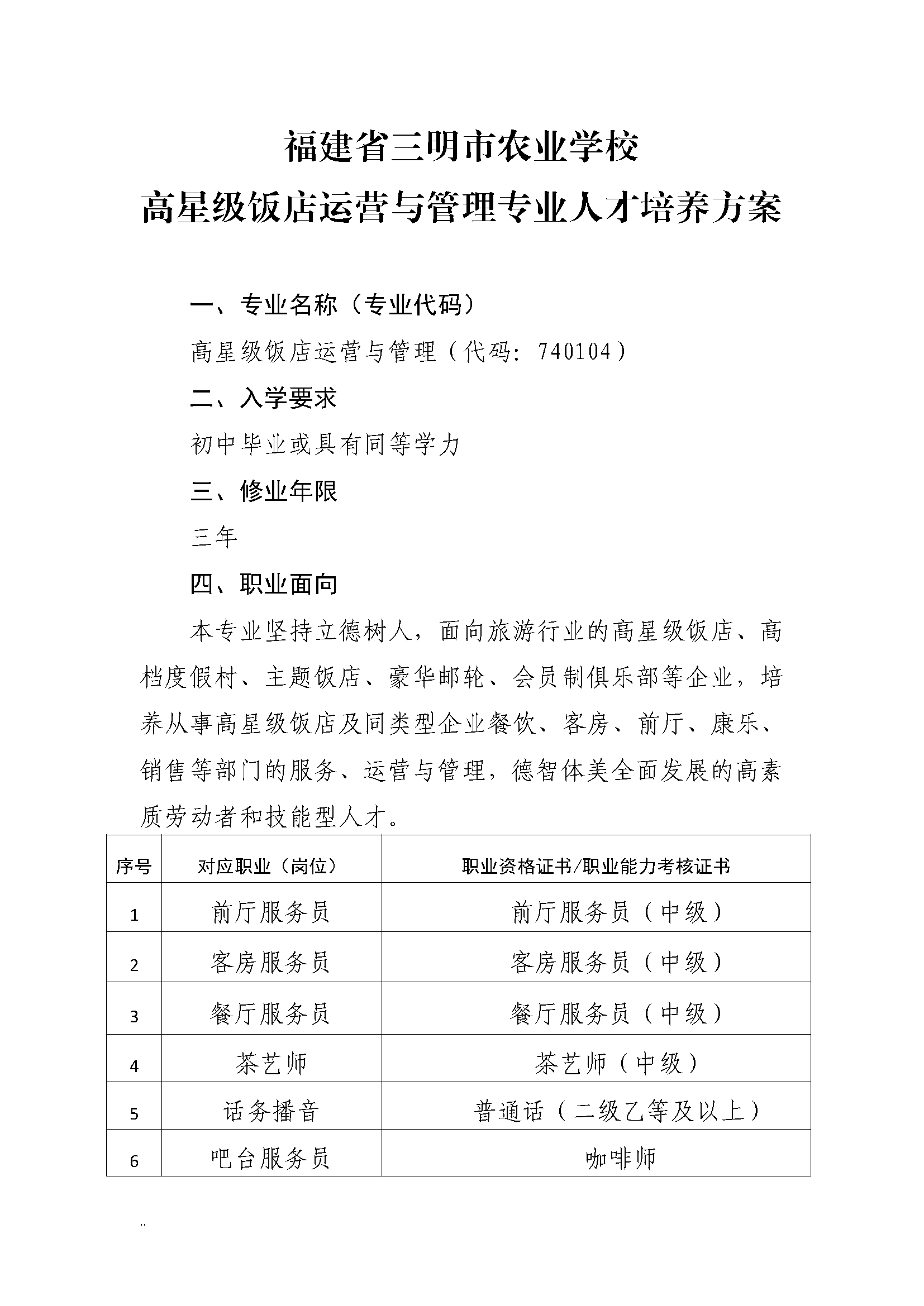 三明市农业学校高星级饭店运营与管理专业人才培养方案(2023)