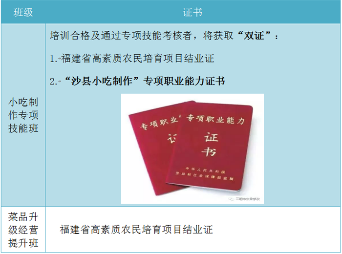 如何取舍:根据自身需求选择,已经获取“沙县小吃制作”专项职业能力证书的,不得再报读沙县小吃制作专项技能班。