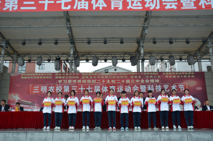 闭幕式上,组委会副主任、党委委员、副校长陈文优宣读了本届体育运动会暨科技艺术节集体项目获奖结果。随后,组委会成员、党政领导代表为获奖个人及班级颁奖。一张张荣誉证书是对运动员们不懈努力的最好肯定。