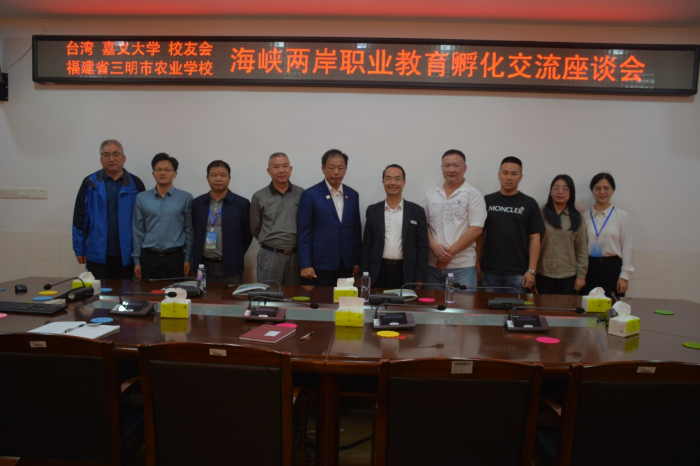 2024 年 11 月 7 日上午,台湾嘉义大学校友会谢登源博士一 行莅临三明市农业学校开展海峡两岸职业教育孵化交流座谈。三明市农业学校党委书记、校⻓罗世钦,党委委员、副校⻓谢阳军、陈文优及相关部⻔同志参加了交流座谈。