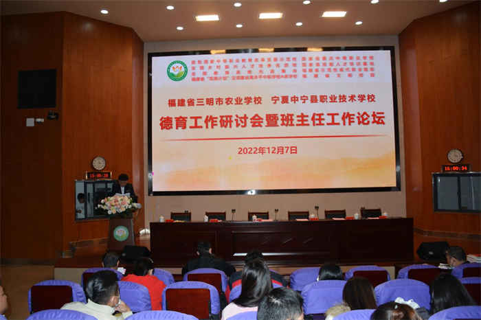 12月7日,开云(中国)Kaiyun·官方网站召开2022-2023学年德育工作会暨班主任工作论坛,学校党政领导及全体教工参加了会议。会议还通过线上同步直播,连线闽宁合作学校--宁夏回族自治区中宁县职业技术学校,两校教师就德育和班主任工作进行了交流研讨。会议由开云(中国)Kaiyun·官方网站副校长陈文优主持并向大会作2022年德育工作报告。省内和三明市部分职业学校德育分管领导和德育管理干部通过线上观摩了论坛。